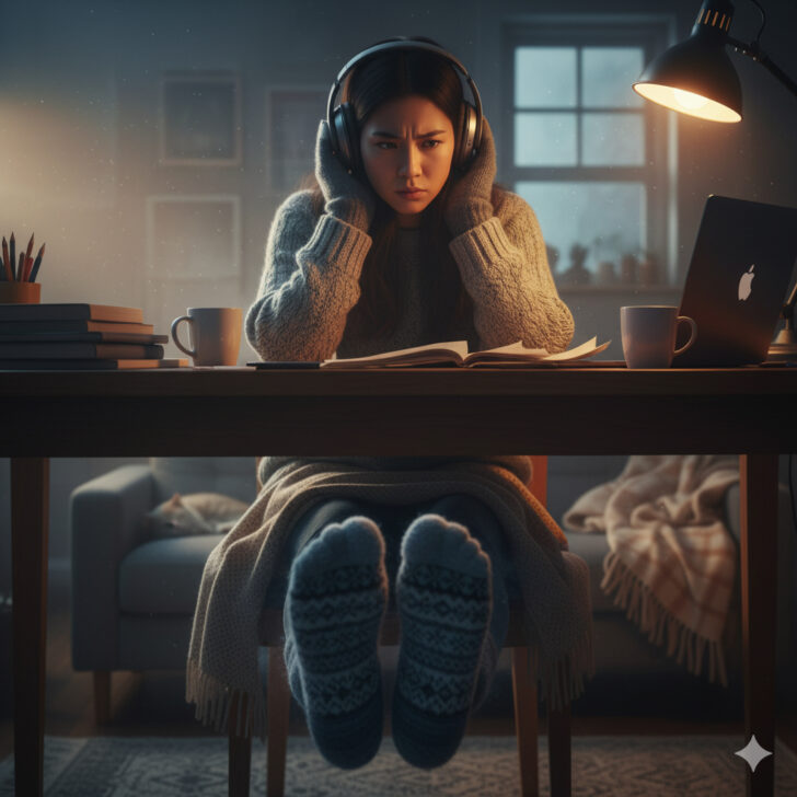 11月にもなると、午前中から足先がじんじんと冷え始め、まるで「氷」のよう。厚手の靴下とフリース素材のスリッパで完全防備しても、一度冷えるともうダメ。寒さで集中力が途切れ、何度も熱いお茶を淹れに立っていました。